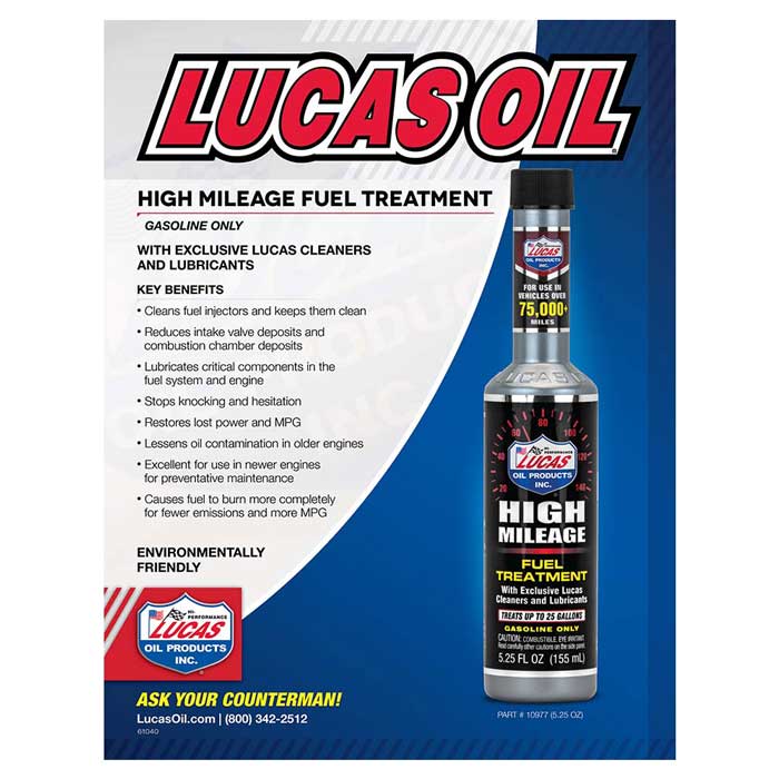 انژکتور شوی لوکاس اویل Lucas High Mileage Fuel Treatment محصول آمریکا، به صورت تخصصی برای بازگرداندن قدرت و عملکرد از دست رفته در وسایل نقلیه با کار کرد بالا طراحی و تولید شده است. این محصول کلیه سیستم سوخت رسانی خودرو شما را شستشو می دهد و اثر آن تا مدت ها باقی می ماند ویژگی بارز این محصول ،عاری بودن آن از هر گونه الکل، نفت سفید، گازوئیل و البته حلال های دارای خاصیت خورندگی است. با این حساب هیچ گونه نگرانی از بابت این مواد مضر وجود نداشته و در ضمن خاصیت روانکاری این محصول باعث می شود که میزان اصطکاک در موتور خودرو نیز کاهش یابد.